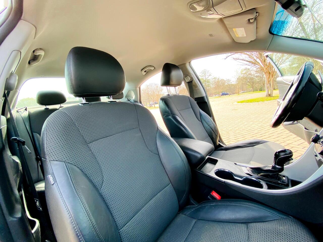 Get ready to take on the open road with this sleek and stylish 2012 Hyundai Sonata! This beauty not only offers a safe and secure ride with child safety door locks and multiple airbags, but it also provides a thrilling driving experience with traction control and electronic brake assistance.Hop inside and feel the luxury of leather seats and a leather steering wheel as you cruise around town in comfort. The front heated seats and separate climate controls ensure that you and your passengers stay cozy no matter the weather outside. And with the power sunroof overhead, you can enjoy the sunshine and fresh air on every drive.But the fun doesn't stop there! With steering wheel mounted controls, you can easily adjust the volume on the AM/FM radio or pop in your favorite CD for some tunes. The subwoofer also ensures that your music sounds crystal clear and bass-boosted as you hit the road.As you drive, the automatic headlights and fog lights will help illuminate your path, while the alloy wheels and front air dam give this Sonata a sporty and modern look. And with power windows and keyless entry, getting in and out of your car has never been easier.Worried about the car's history? Fear not! A Carfax report is available for this Hyundai Sonata, giving you peace of mind about its past. So what are you waiting for? Come test drive this feature-packed beauty today and experience the excitement of driving a premium vehicle at an affordable price!