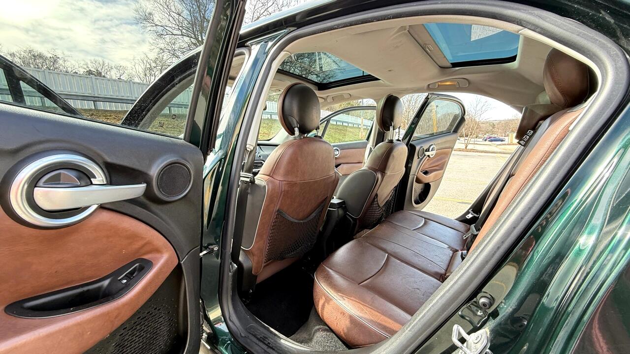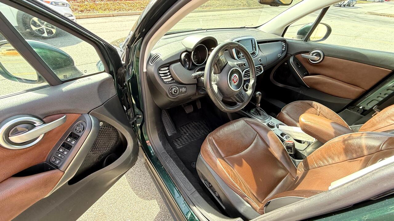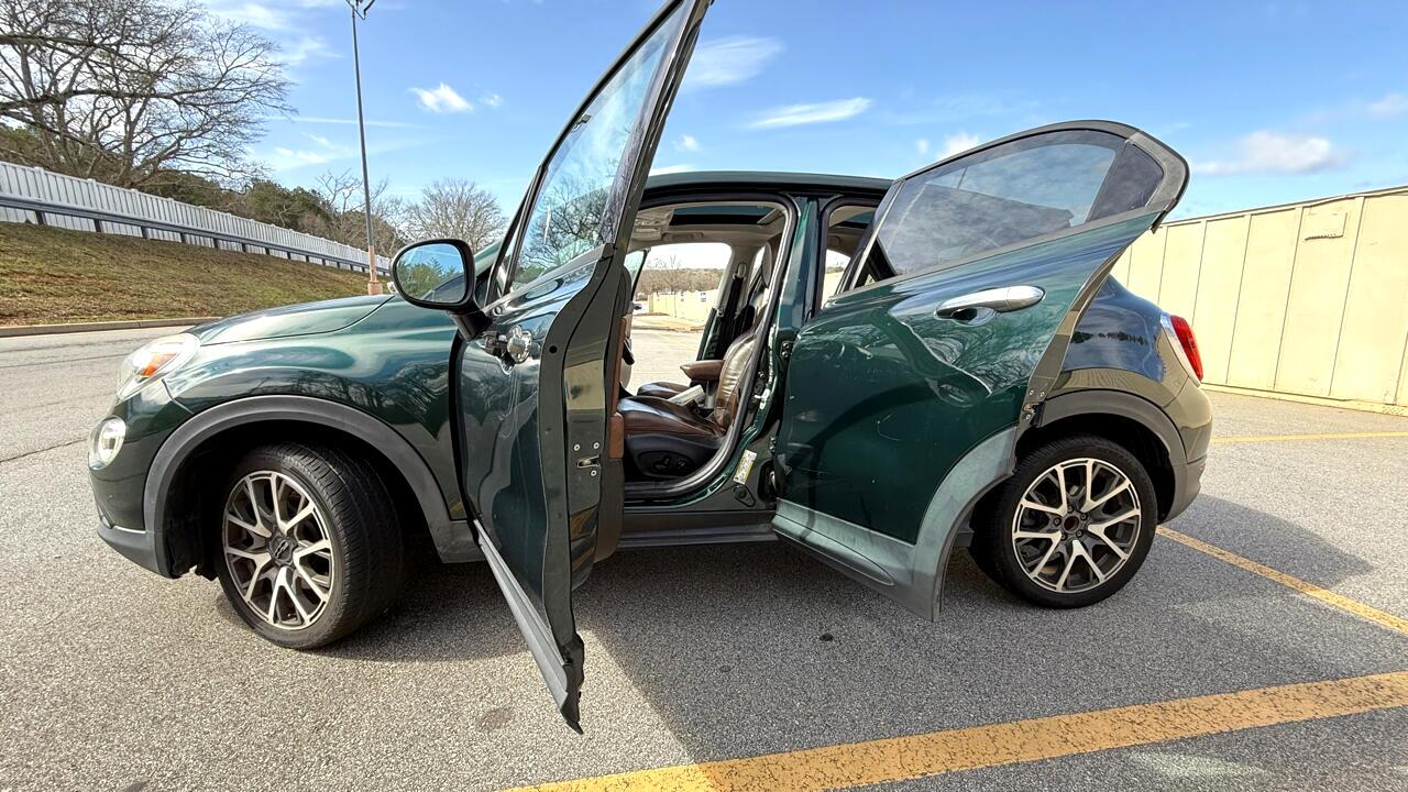 Get ready to turn heads in this vibrant Green 2016 Fiat 500x! This compact SUV is not just eye-catching, but it's also packed with safety features and technology to make every drive a breeze. Rest assured knowing that this car comes with a Carfax report, so you can purchase with confidence.With its sleek design and sporty rear spoiler, this Fiat 500x is ready to hit the road in style. The alloy wheels add a touch of sophistication, while the deep tinted glass provides privacy and protection from the sun. Whether you're cruising around town or heading out on a road trip, this car is sure to impress.Step inside and you'll find a comfortable and luxurious interior. Sink into the plush leather seats and adjust the driver's seat to your liking with the multi-adjustable power seat feature. Stay cozy on chilly days with the front heated seats and heated steering wheel, while the separate climate controls keep you and your passenger at the perfect temperature.Stay connected and entertained with the AM/FM radio and navigation aid. The telematics system allows you to easily access information and control certain features from your smartphone. Cruise control makes long drives a breeze, while the tilt and telescopic steering column ensures a comfortable driving position for drivers of all sizes.Safety is a top priority in this Fiat 500x, with features like ABS brakes, traction control, and multiple airbags throughout the vehicle. The vehicle stability control system keeps you steady on the road, while the tire pressure monitor alerts you to any issues. With child safety door locks and keyless entry, you can feel secure knowing your loved ones are protected.Don't miss out on the chance to own this fun and reliable 2016 Fiat 500x. With its array of features and stylish design, this car is sure to bring excitement to every drive. Stop by and take it for a test drive today - you won't be disappointed!