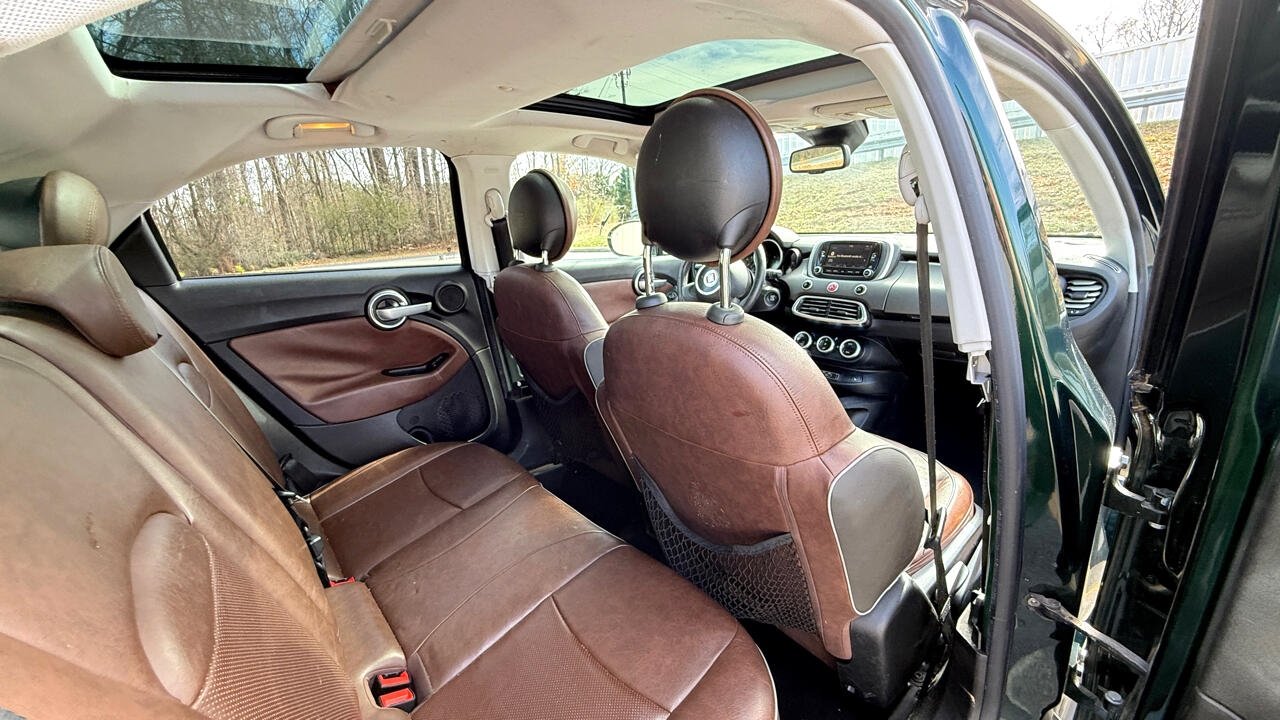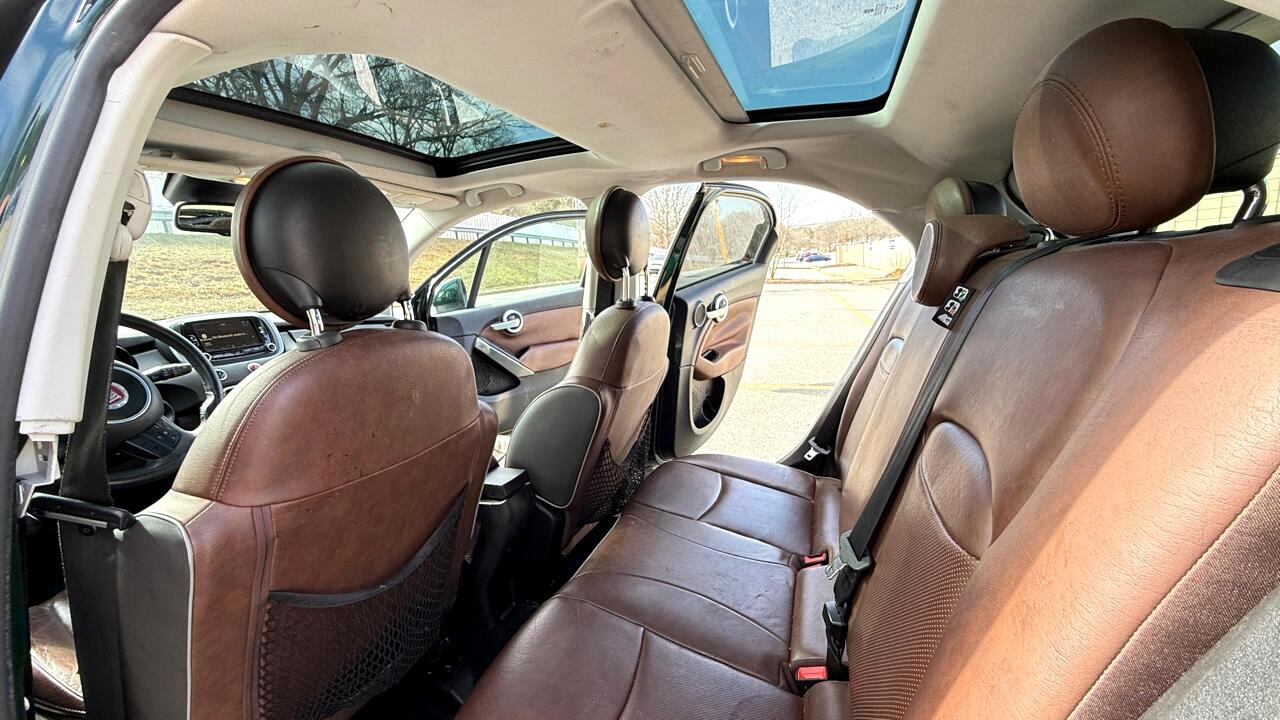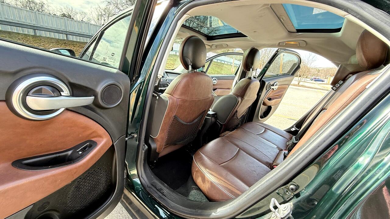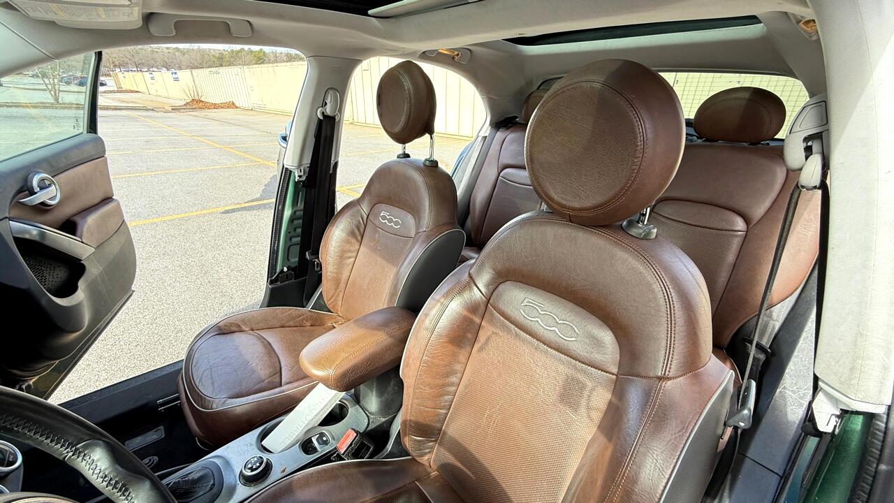 Get ready to turn heads in this vibrant Green 2016 Fiat 500x! This compact SUV is not just eye-catching, but it's also packed with safety features and technology to make every drive a breeze. Rest assured knowing that this car comes with a Carfax report, so you can purchase with confidence.With its sleek design and sporty rear spoiler, this Fiat 500x is ready to hit the road in style. The alloy wheels add a touch of sophistication, while the deep tinted glass provides privacy and protection from the sun. Whether you're cruising around town or heading out on a road trip, this car is sure to impress.Step inside and you'll find a comfortable and luxurious interior. Sink into the plush leather seats and adjust the driver's seat to your liking with the multi-adjustable power seat feature. Stay cozy on chilly days with the front heated seats and heated steering wheel, while the separate climate controls keep you and your passenger at the perfect temperature.Stay connected and entertained with the AM/FM radio and navigation aid. The telematics system allows you to easily access information and control certain features from your smartphone. Cruise control makes long drives a breeze, while the tilt and telescopic steering column ensures a comfortable driving position for drivers of all sizes.Safety is a top priority in this Fiat 500x, with features like ABS brakes, traction control, and multiple airbags throughout the vehicle. The vehicle stability control system keeps you steady on the road, while the tire pressure monitor alerts you to any issues. With child safety door locks and keyless entry, you can feel secure knowing your loved ones are protected.Don't miss out on the chance to own this fun and reliable 2016 Fiat 500x. With its array of features and stylish design, this car is sure to bring excitement to every drive. Stop by and take it for a test drive today - you won't be disappointed!