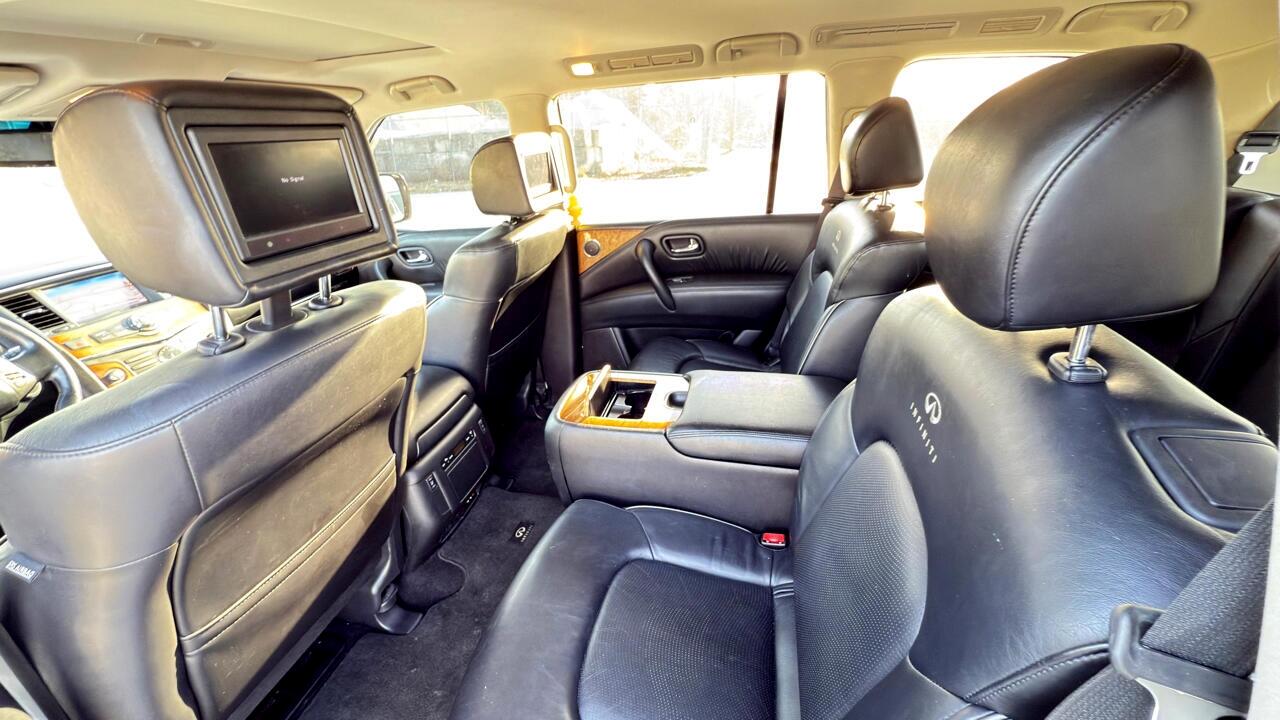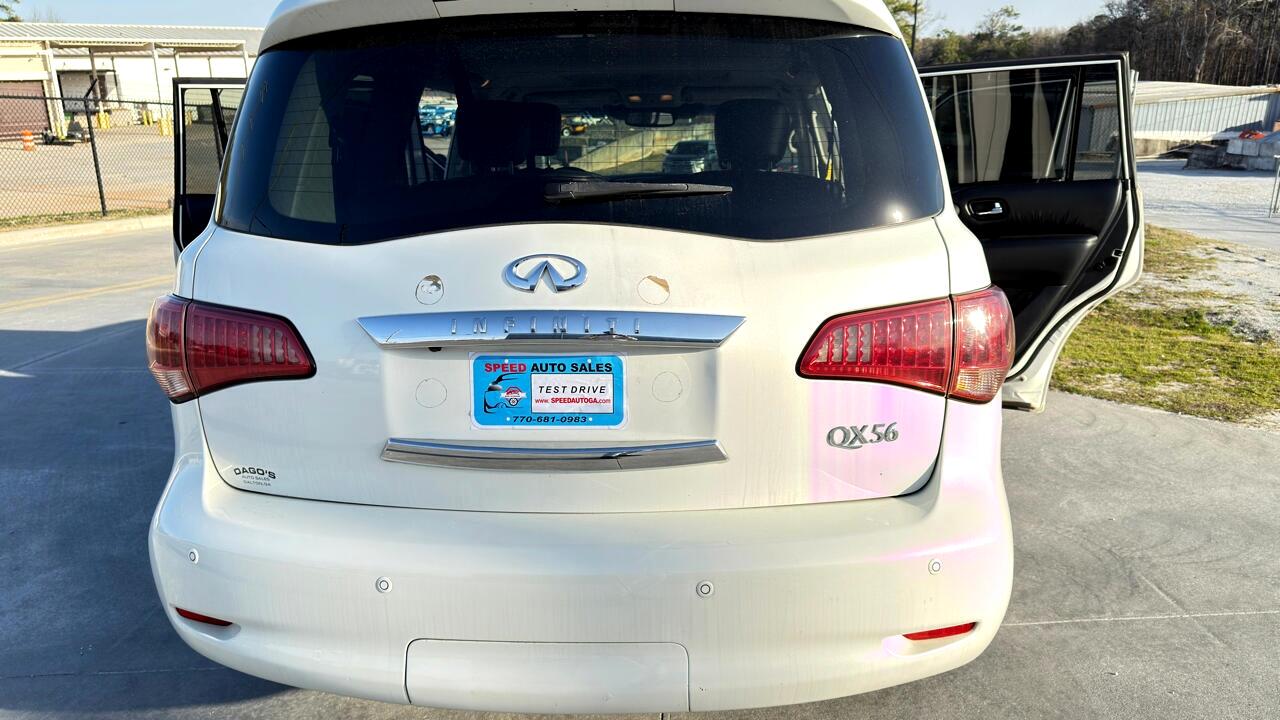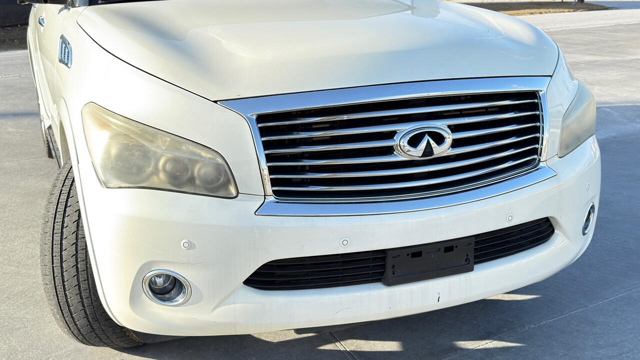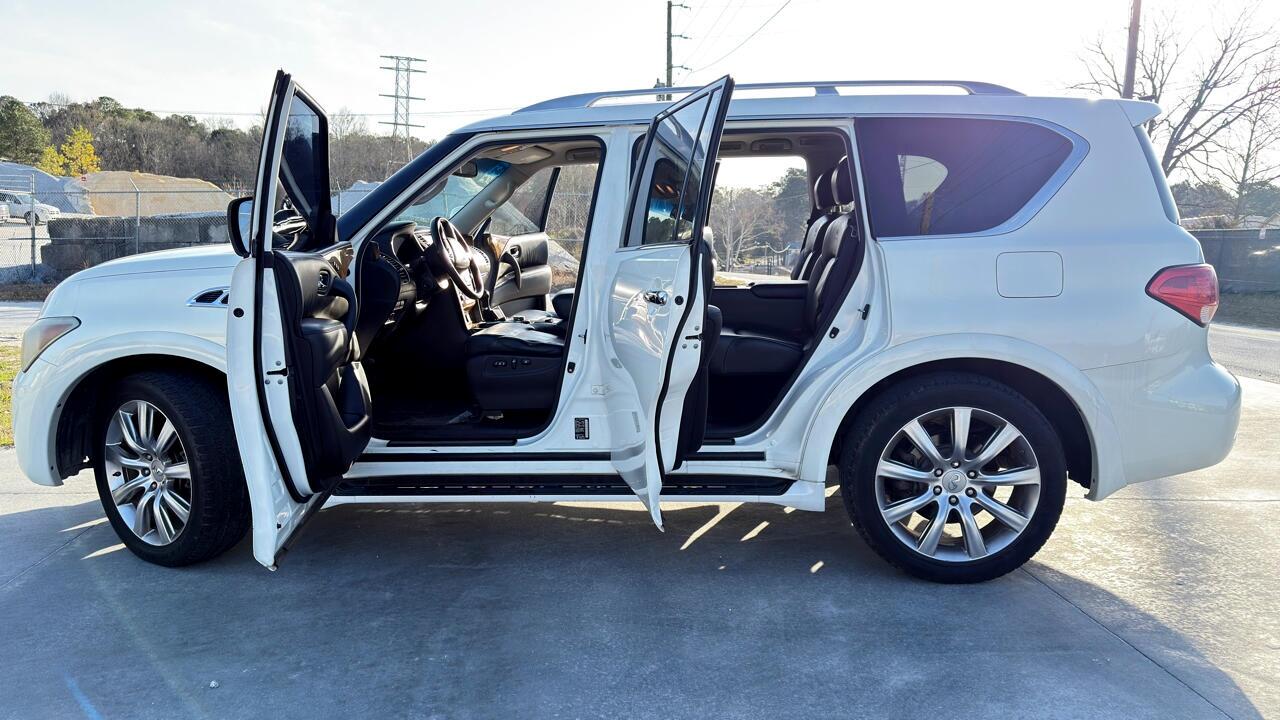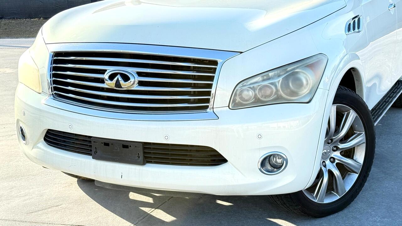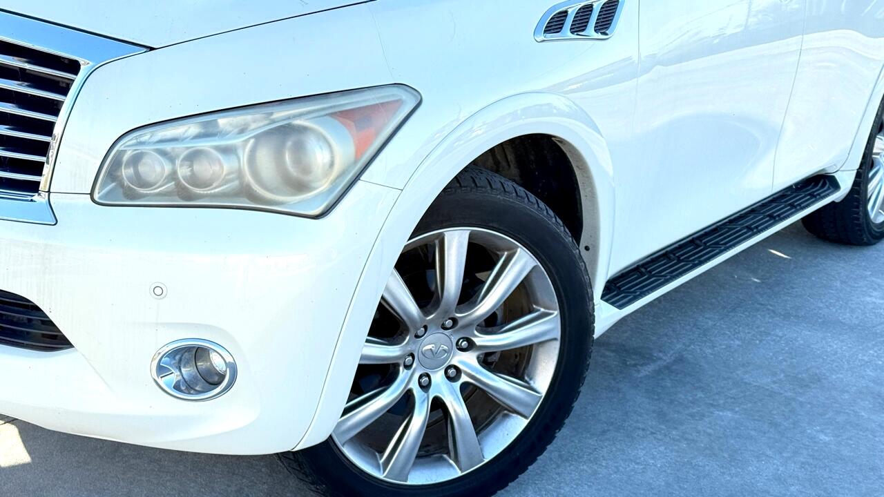 Buckle up and get ready to elevate your driving experience with this sleek and stylish 2013 Infiniti QX56! This sophisticated white beauty is not just a car; it's a statement. Whether you're cruising through city streets or tackling rugged terrain, this Infiniti is up for any adventure with its exceptional 4WD/AWD capabilities.Equipped with top-of-the-line safety features like Child Safety Door Locks, ABS Brakes, Vehicle Stability Control System, and multiple airbags, you can have peace of mind knowing that you and your loved ones are well protected on the road. And with Electronic Brake Assistance and Traction Control, you'll have the confidence to navigate any driving situation with ease.When it comes to comfort and convenience, this Infiniti does not disappoint. Slip into the luxurious leather seats with Front Heated Seats, Front Power Lumbar Support, and Front Power Memory Seats, and let the worries of the day melt away. The genuine wood trim and heated steering wheel add a touch of elegance to the already upscale interior.Stay entertained and informed with the AM/FM Radio, CD Player, DVD Player, and Navigation Aid - perfect for those road trips or daily commutes. The Subwoofer provides crystal-clear audio quality, while the Steering Wheel Mounted Controls keep everything within easy reach.Whether you're heading out for a weekend getaway or just running errands around town, the spacious cargo area with Cargo Area Tiedowns and the Third Row Removable Seat offer versatility for all your storage needs. And with the Power Sunroof, you can let the sunshine in and enjoy the open air whenever the mood strikes.Not to mention, this Infiniti comes with a Carfax report, so you can buy with confidence, knowing the vehicle's history is transparent and reliable. With its stunning Alloy Wheels, Automatic Headlights, and Rear Spoiler, this Infiniti QX56 is sure to turn heads wherever you go.Don't miss your chance to own this incredible 2013 Infiniti QX56 - a perfect blend of luxury, performance, and safety. Come in today and experience the thrill of driving this exceptional vehicle for yourself!