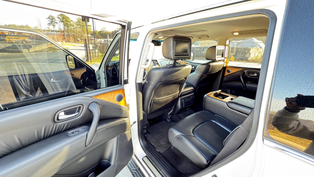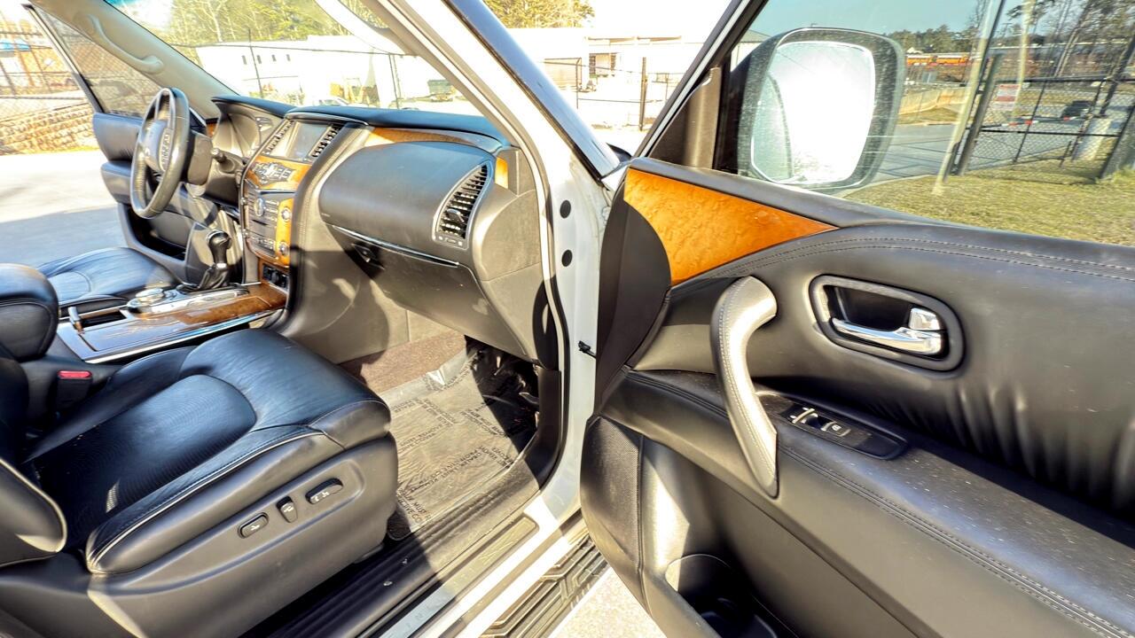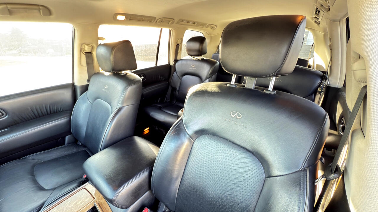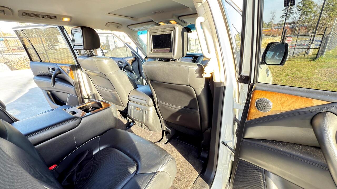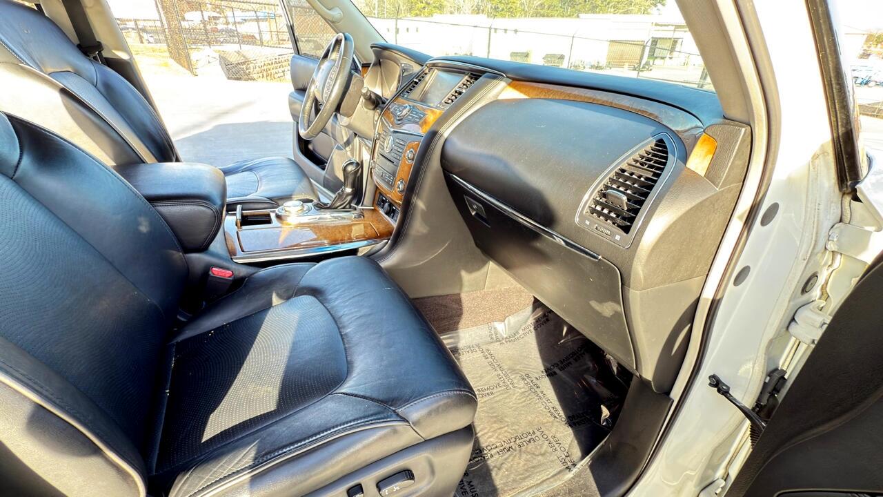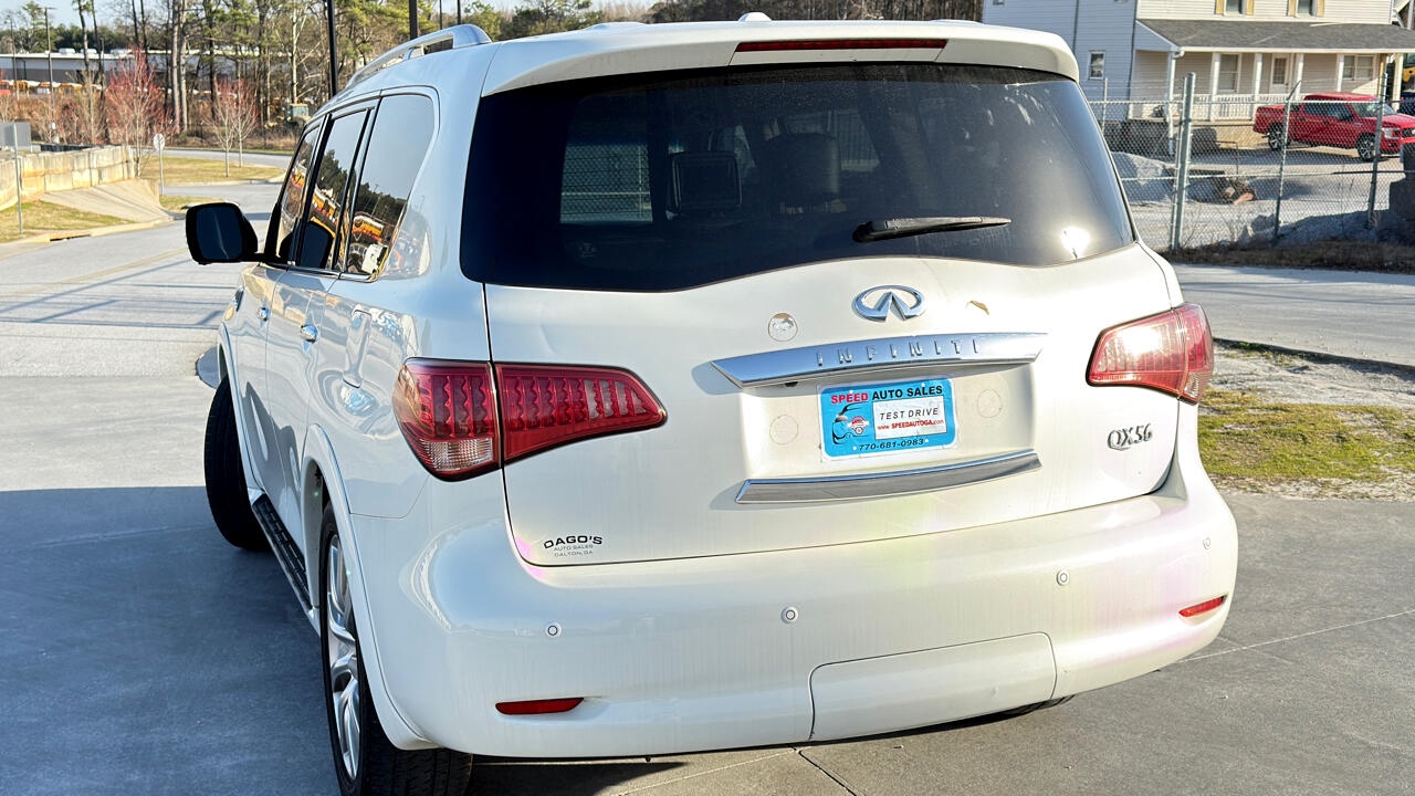 Buckle up and get ready to elevate your driving experience with this sleek and stylish 2013 Infiniti QX56! This sophisticated white beauty is not just a car; it's a statement. Whether you're cruising through city streets or tackling rugged terrain, this Infiniti is up for any adventure with its exceptional 4WD/AWD capabilities.Equipped with top-of-the-line safety features like Child Safety Door Locks, ABS Brakes, Vehicle Stability Control System, and multiple airbags, you can have peace of mind knowing that you and your loved ones are well protected on the road. And with Electronic Brake Assistance and Traction Control, you'll have the confidence to navigate any driving situation with ease.When it comes to comfort and convenience, this Infiniti does not disappoint. Slip into the luxurious leather seats with Front Heated Seats, Front Power Lumbar Support, and Front Power Memory Seats, and let the worries of the day melt away. The genuine wood trim and heated steering wheel add a touch of elegance to the already upscale interior.Stay entertained and informed with the AM/FM Radio, CD Player, DVD Player, and Navigation Aid - perfect for those road trips or daily commutes. The Subwoofer provides crystal-clear audio quality, while the Steering Wheel Mounted Controls keep everything within easy reach.Whether you're heading out for a weekend getaway or just running errands around town, the spacious cargo area with Cargo Area Tiedowns and the Third Row Removable Seat offer versatility for all your storage needs. And with the Power Sunroof, you can let the sunshine in and enjoy the open air whenever the mood strikes.Not to mention, this Infiniti comes with a Carfax report, so you can buy with confidence, knowing the vehicle's history is transparent and reliable. With its stunning Alloy Wheels, Automatic Headlights, and Rear Spoiler, this Infiniti QX56 is sure to turn heads wherever you go.Don't miss your chance to own this incredible 2013 Infiniti QX56 - a perfect blend of luxury, performance, and safety. Come in today and experience the thrill of driving this exceptional vehicle for yourself!