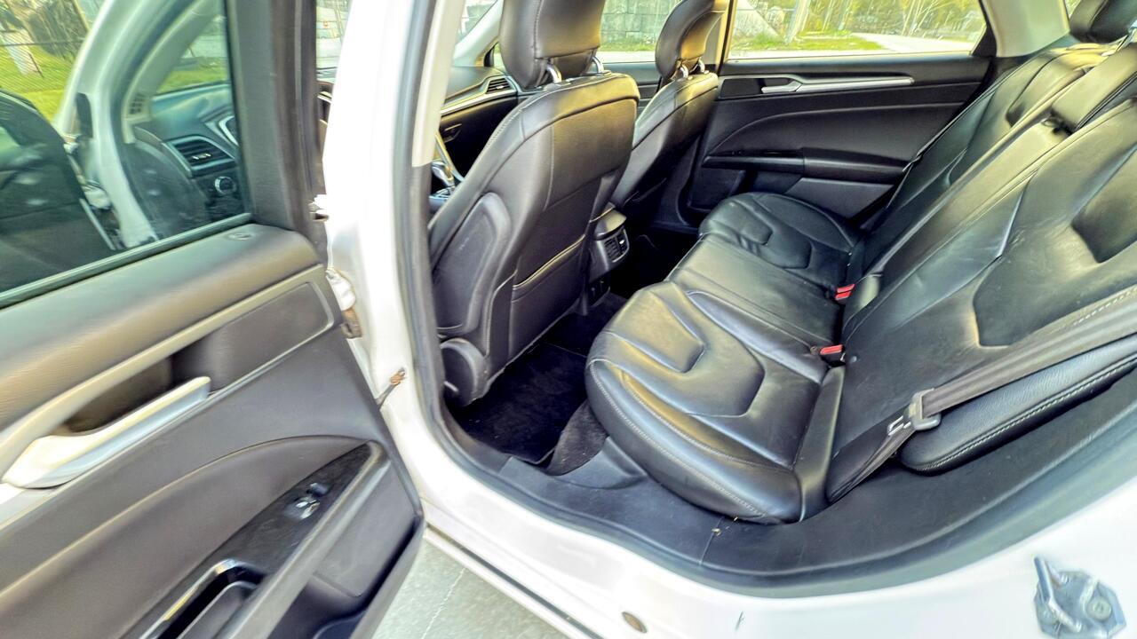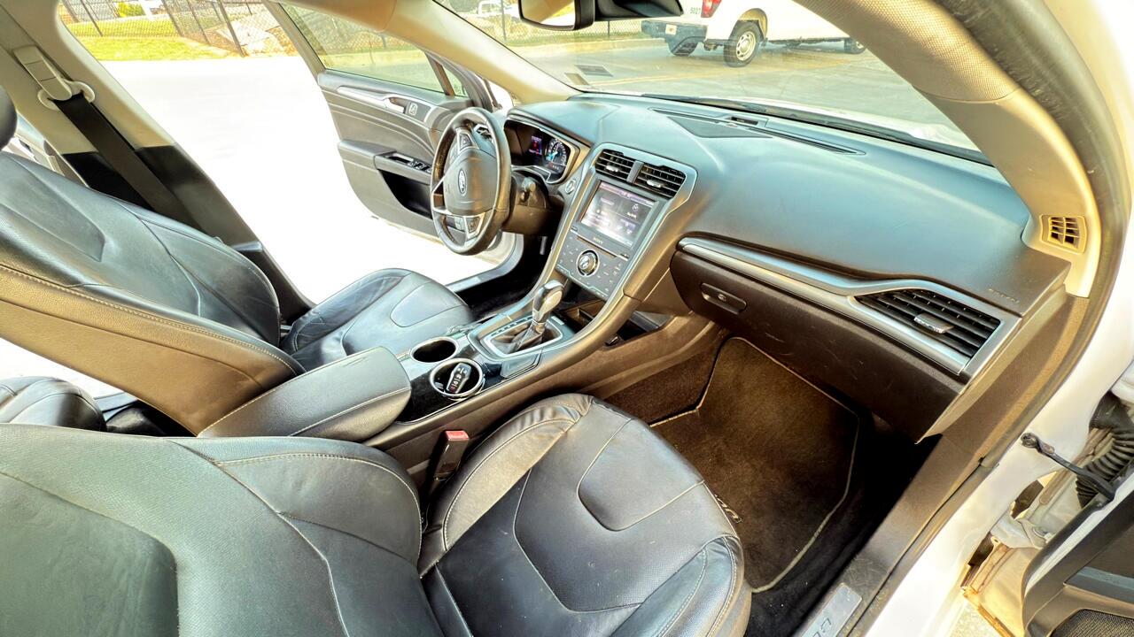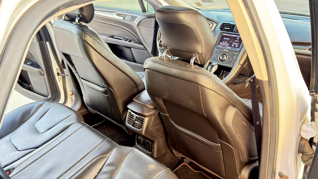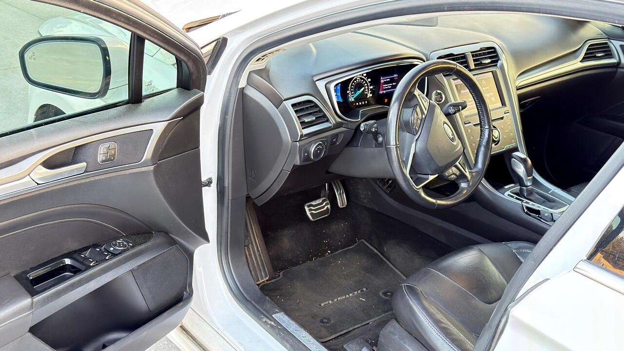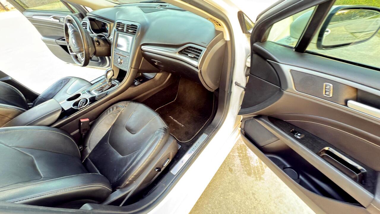 Get ready to hit the road in style with this sleek and sporty 2013 Ford Fusion! This white beauty is not just a car, it's a full-on experience. With the safety features like child safety door locks and multiple airbags, you can drive with peace of mind knowing your precious cargo is protected. The power door locks and vehicle anti-theft system offer added security, while the electronic brake assistance and ABS brakes ensure a smooth and safe ride every time.Step inside and you'll be greeted by a world of comfort and convenience. The leather seats and separate driver/front passenger climate controls make every journey a luxurious one. Set your ideal temperature, adjust the front power lumbar support seats, and hit the road in ultimate comfort. The driver multi-adjustable power seat and passenger multi-adjustable power seat options allow you to find your perfect position for those long drives. Don't worry about getting lost on your adventures - the navigation system and trip computer have got you covered. You'll always be in control with the steering wheel-mounted controls and tilt/telescopic steering column. And with keyless entry and remote ignition, you can start your engine with the push of a button.Let's not forget about the entertainment factor. The CD player and sound system will keep you grooving on the go. Automatic headlights and fog lights illuminate your path, while the rear spoiler and alloy wheels give this Ford Fusion an extra touch of style. One of the best features of this car is that a Carfax report is available, giving you peace of mind about its history and ensuring a worry-free purchase. So why wait? Come take this beauty for a test drive today and experience the thrill of driving a 2013 Ford Fusion for yourself!