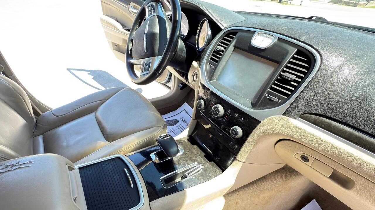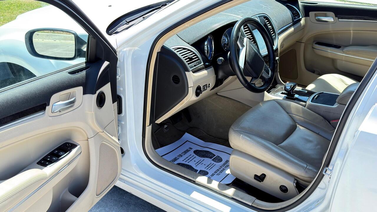 Introducing this sleek and stylish 2013 Chrysler 300, the perfect combination of luxury and performance! This White beauty is not just a car, it's a statement - turning heads wherever it goes with its bold design and elegant curves. Equipped with advanced safety features like Child Safety Door Locks and an array of airbags, this car ensures a worry-free ride for you and your loved ones.Step inside the spacious cabin, and you'll be greeted by a world of comfort and convenience. Sink into the plush Leather Seats that not only look good but also provide maximum comfort on long drives. The front seats are heated, perfect for those chilly mornings, and with power adjustments and lumbar support, finding the perfect driving position is a breeze.Stay entertained and informed with the AM/FM Radio and CD Player, or pop in a DVD for endless entertainment options. Take control without taking your hands off the Leather Steering Wheel thanks to the convenient mounted controls. Cruise down the highway seamlessly with Cruise Control while keeping an eye on your speed with the Tachometer.The powerful engine comes to life with a push of a button, ready to tackle any road with confidence. The Electronic Brake Assistance and Traction Control ensure a smooth and safe ride, while the Alloy Wheels add a touch of sophistication to the overall look of the car.Whether you're driving around town or heading out on a road trip, this Chrysler 300 offers a luxurious and comfortable experience for everyone on board. With features like Keyless Entry and Power Windows, convenience is always at your fingertips. The Automatic Headlights and High-Intensity Discharge Headlights illuminate the road ahead, while the Electrochromic Interior Rearview Mirror minimizes glare from trailing vehicles.To top it all off, a Carfax report is available, giving you peace of mind and assurance that this vehicle has been well-maintained and is ready for new adventures. Don't miss out on the opportunity to own this stunning 2013 Chrysler 300 - a true standout in the world of luxury sedans!
